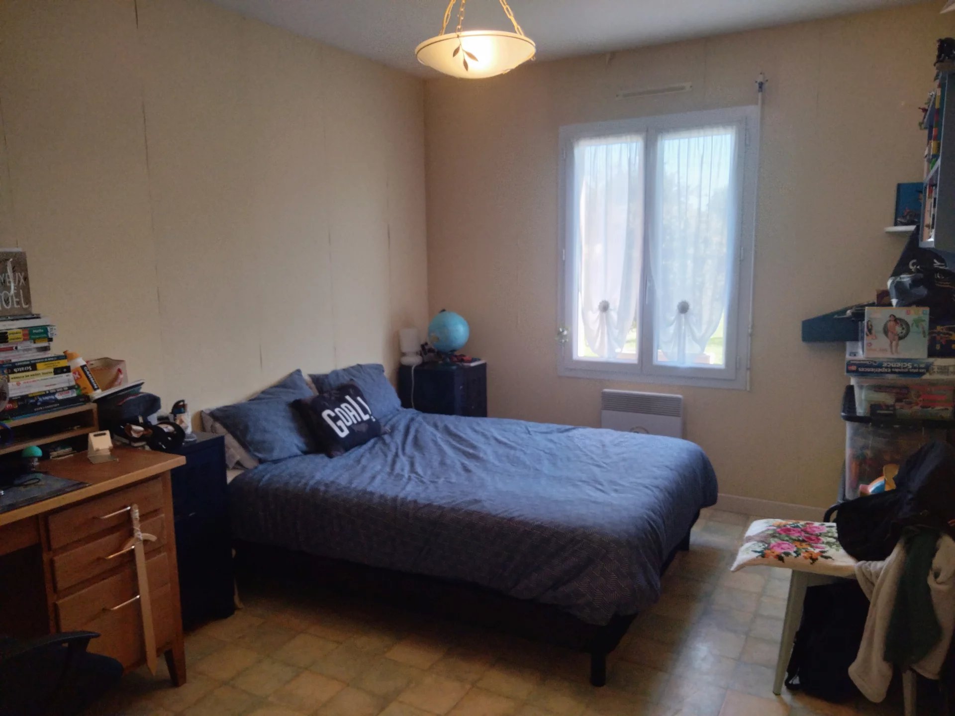 Cellier, toilette, salle de bains et double vasque et 3 grandes chambres dont 2 avec placards.