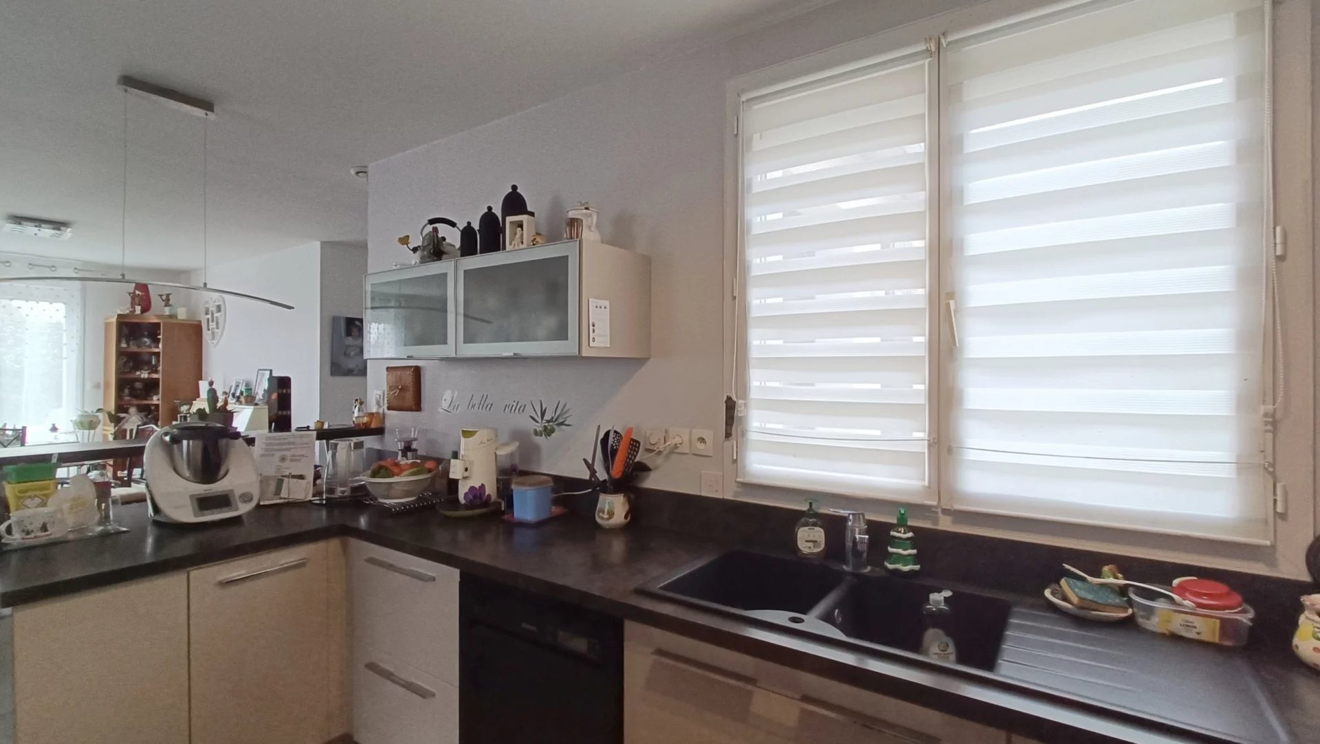 GOURDON IMMOBILIER vous propose à la vente, EN EXCLUSIVITÉ, à 1 300 mètres des commerces et commodités, sur la commune de Buxerolles, une maison de plain-pied, environ 103 m2 habitables, comprenant : entrée avec placard, pièce de vie avec cuisine ouverte aménagée et équipée, buanderie, dégagement avec placard, trois chambres avec placard dont une avec salle de bain/WC, salle d’eau/WC. Garage attenant. Terrain de 609 m2.