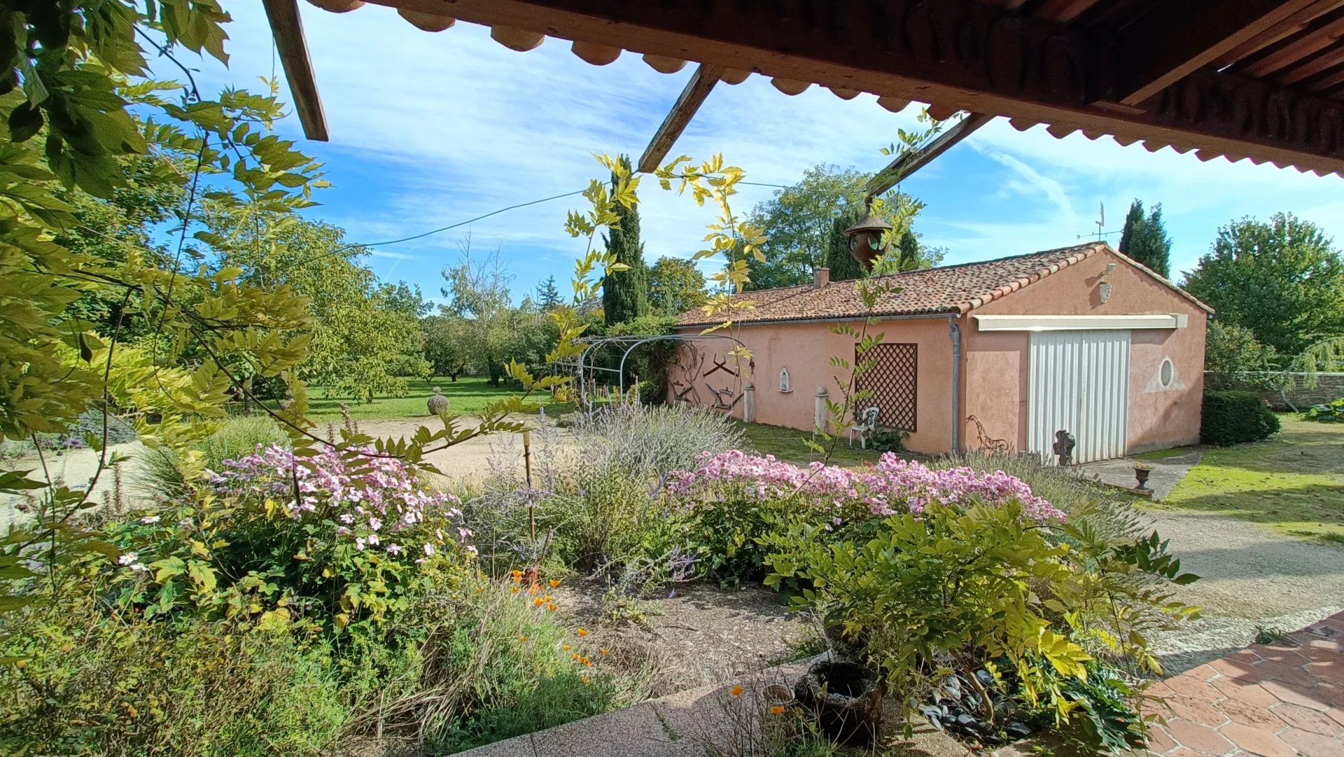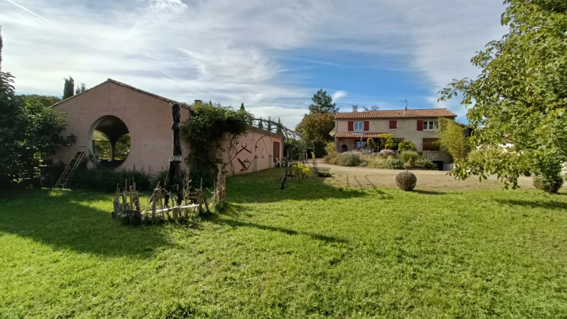 En extérieur : préau, bâtiment avec verrières pouvant accueillir une piscine, petits toits. Terrain de 3 552 m2, clos de murs et paysagé.