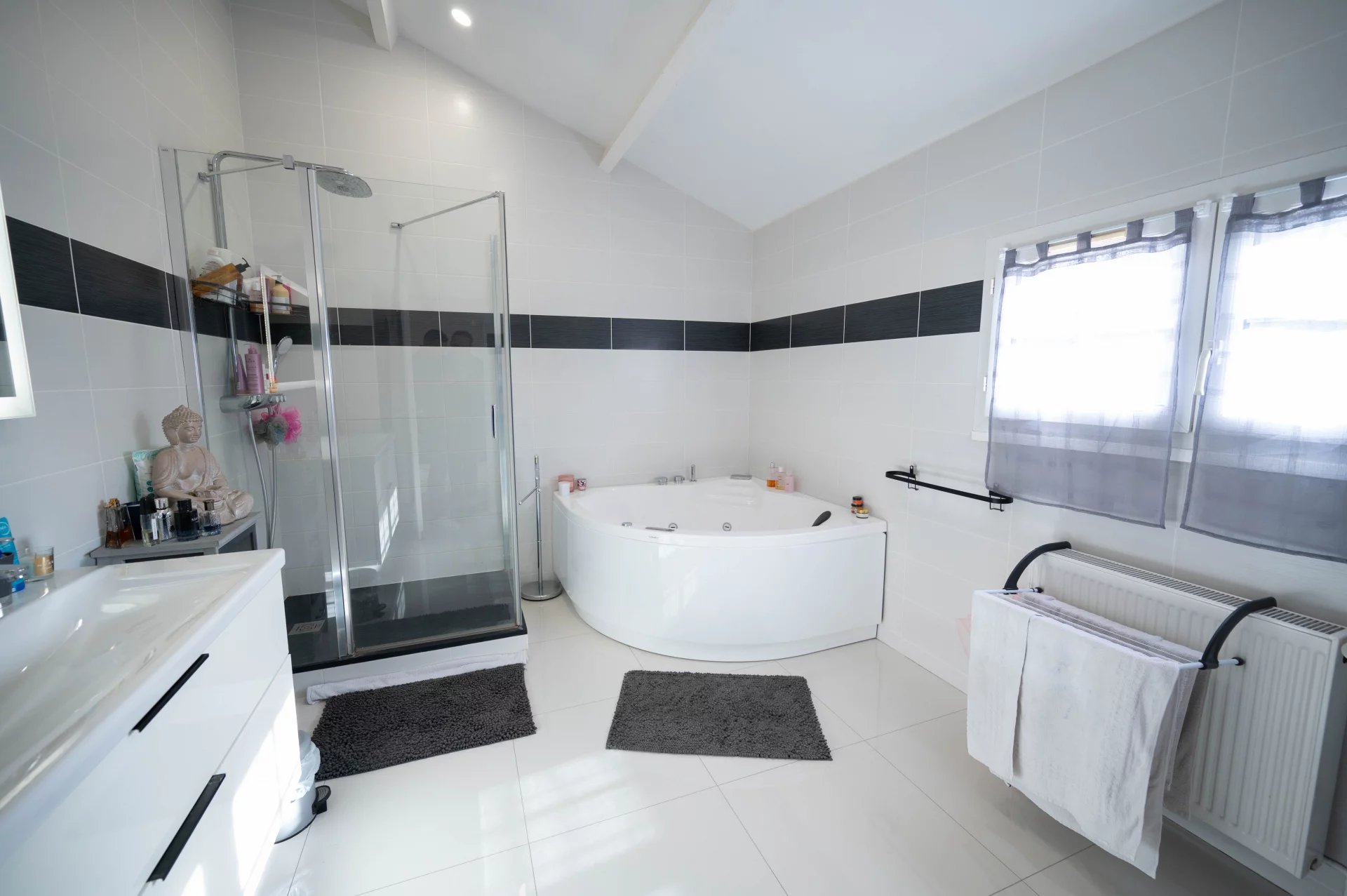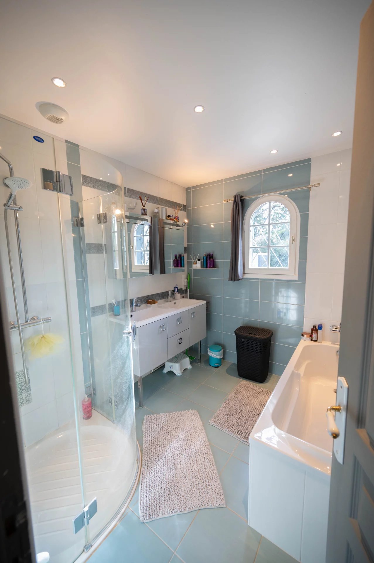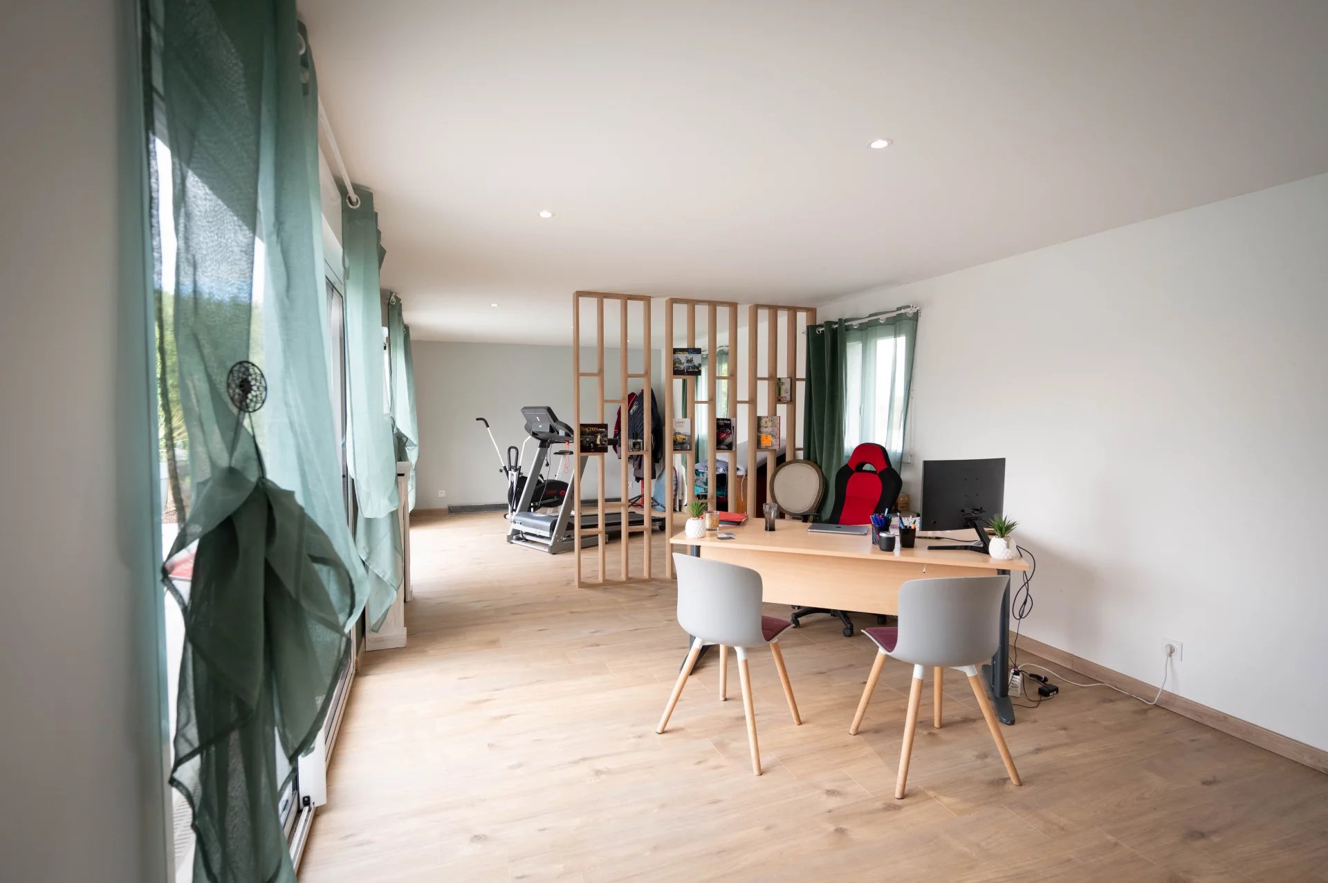 Au 1er étage : un espace bureau ou salle de jeux et une agréable suite parentale avec son dressing et sa salle de bain privative (avec douche et baignoire balnéo).