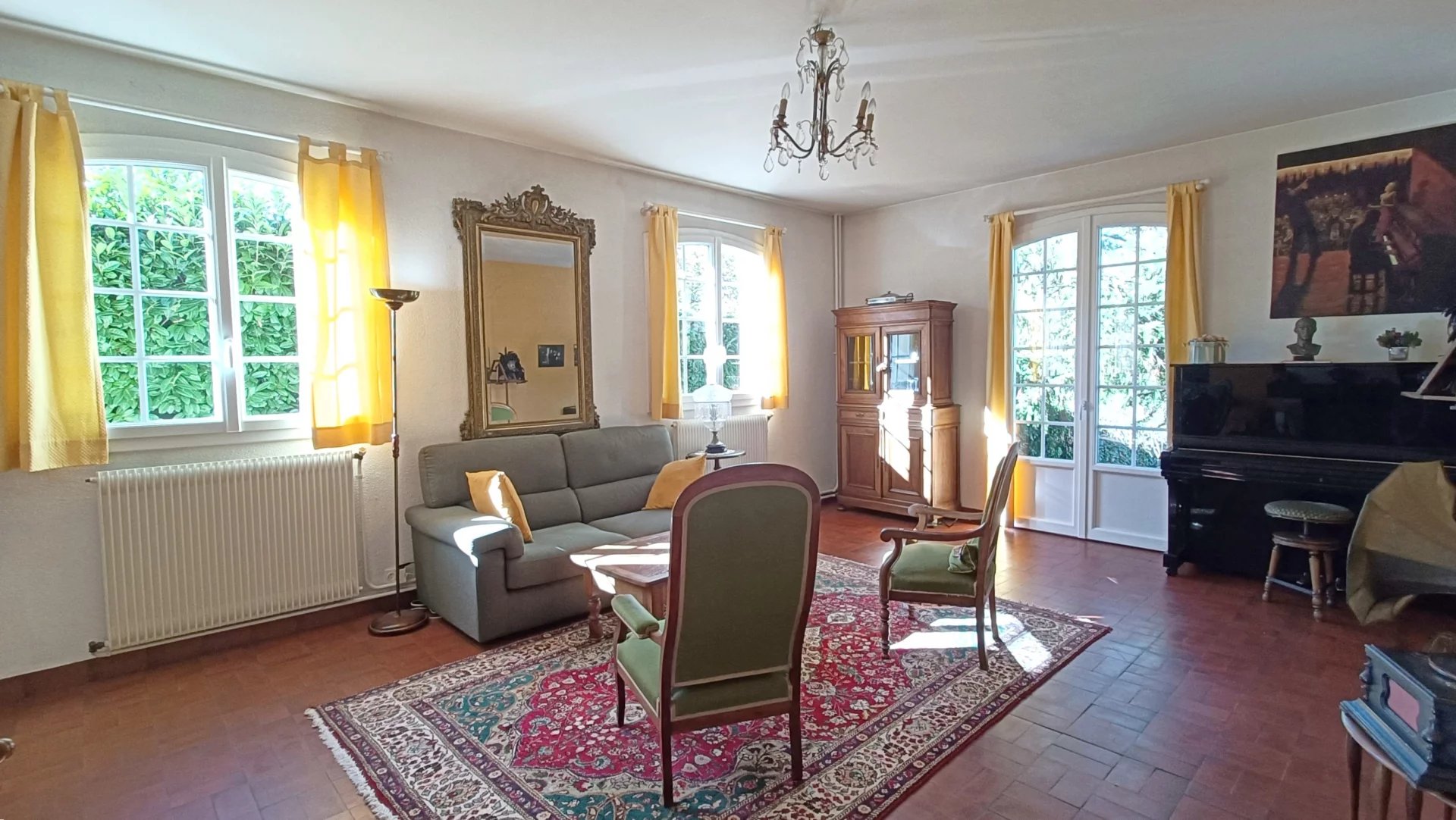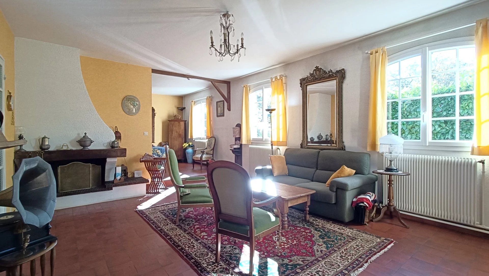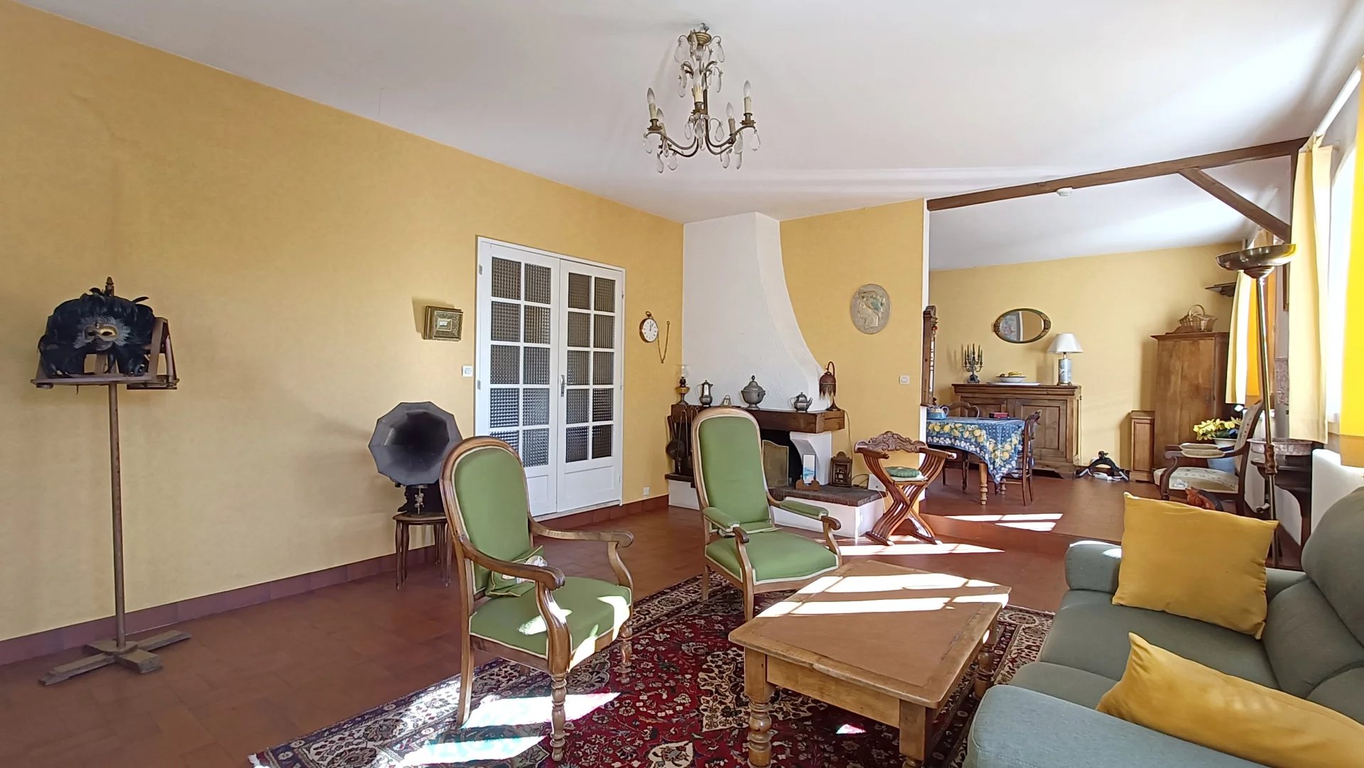 En extérieur : cave, préau, dépendances. Terrain clos et paysagé de 2 125 m2, sécurisé par un portail électrique.