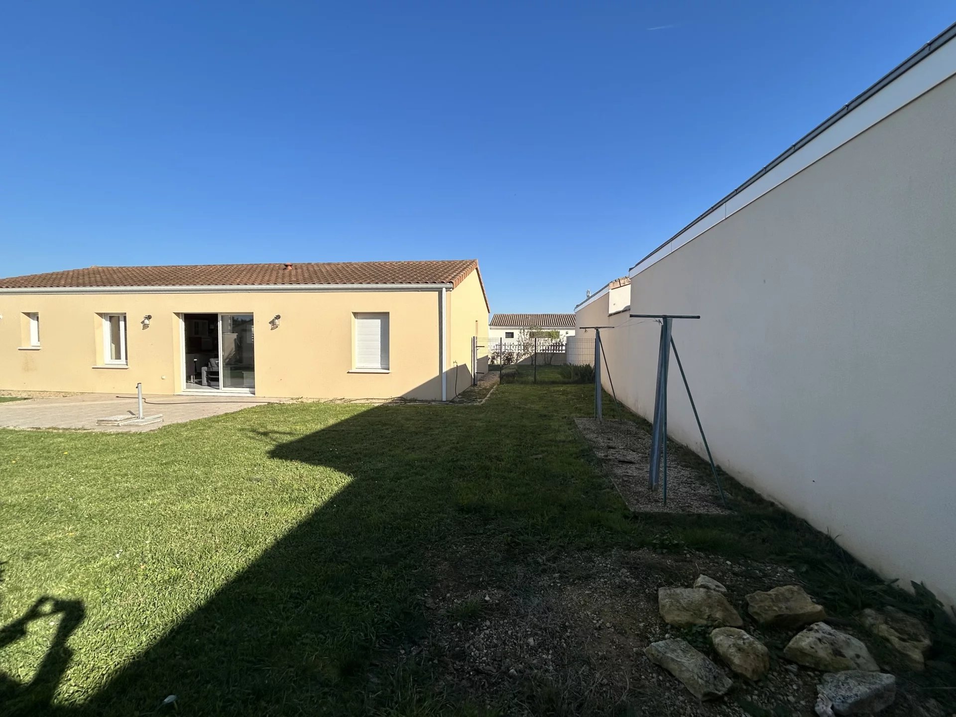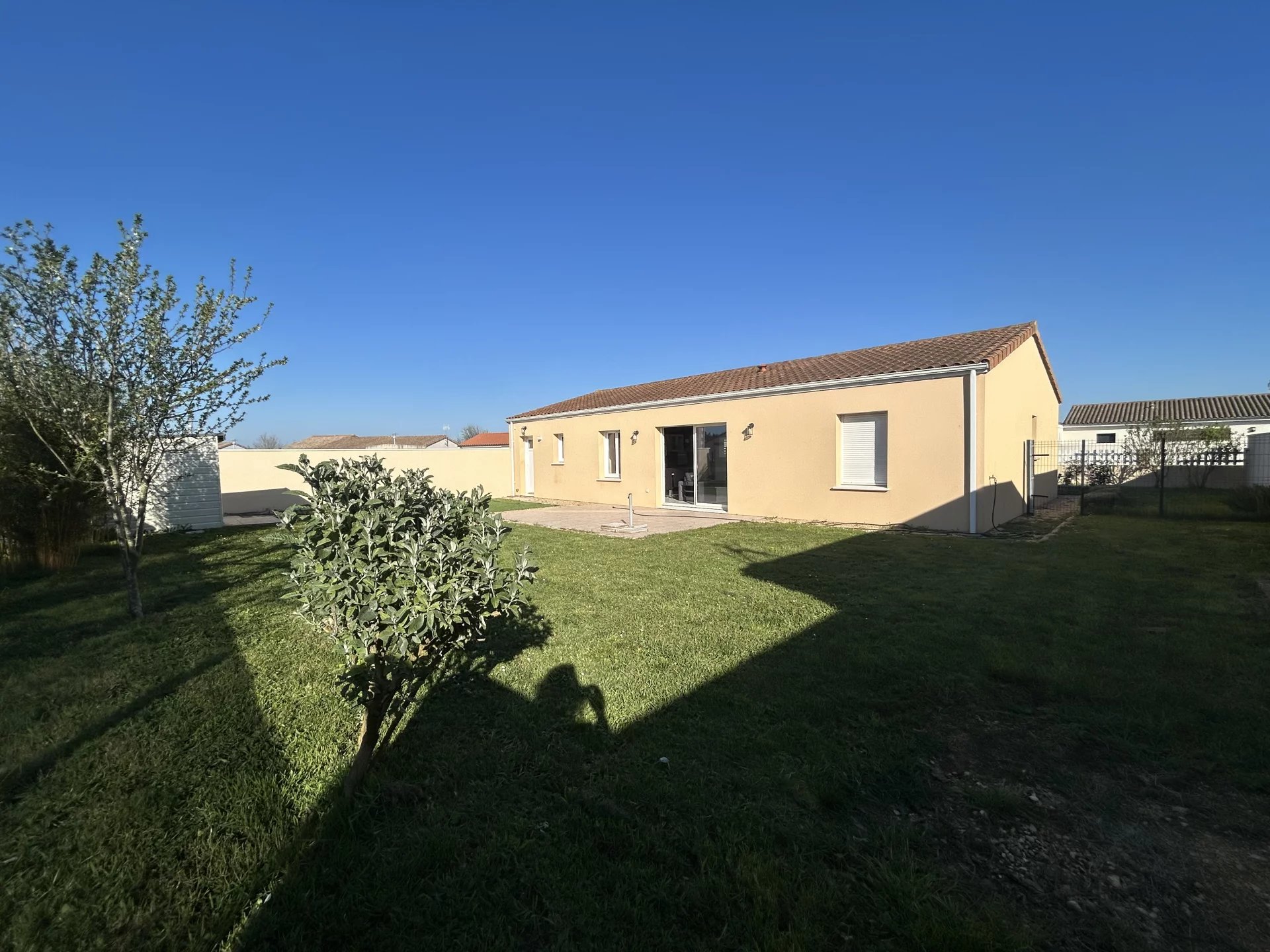 GOURDON IMMOBILIER vous propose à la vente, à 900 mètres du centre de Neuville de Poitou, proche commodités, une maison de plain-pied, environ 92 m2 habitables, comprenant : entrée avec placard sur pièce de vie avec cuisine ouverte aménagée et équipée, cellier, dégagement, trois chambres, WC, salle de bain. Garage attenant.