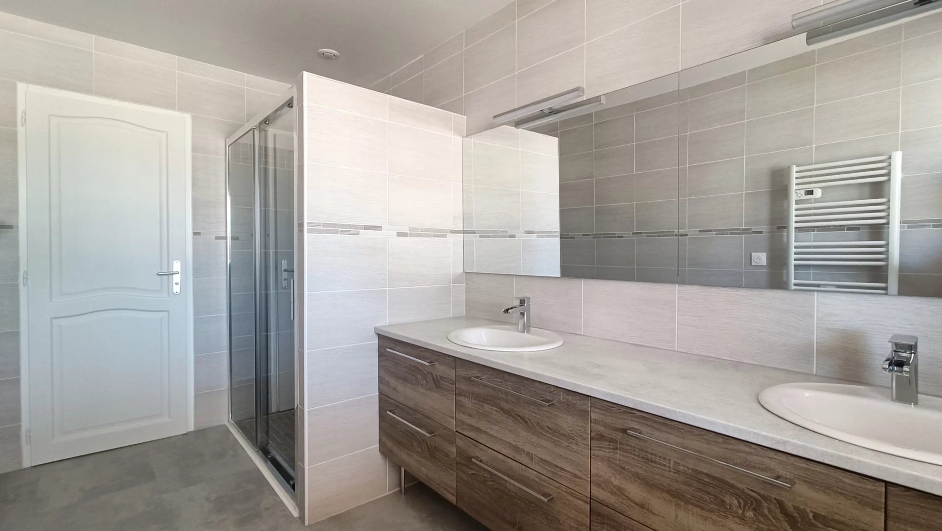 Assainissement individuel. Chauffage pompe à chaleur air/eau avec plancher chauffant. Adoucisseur.