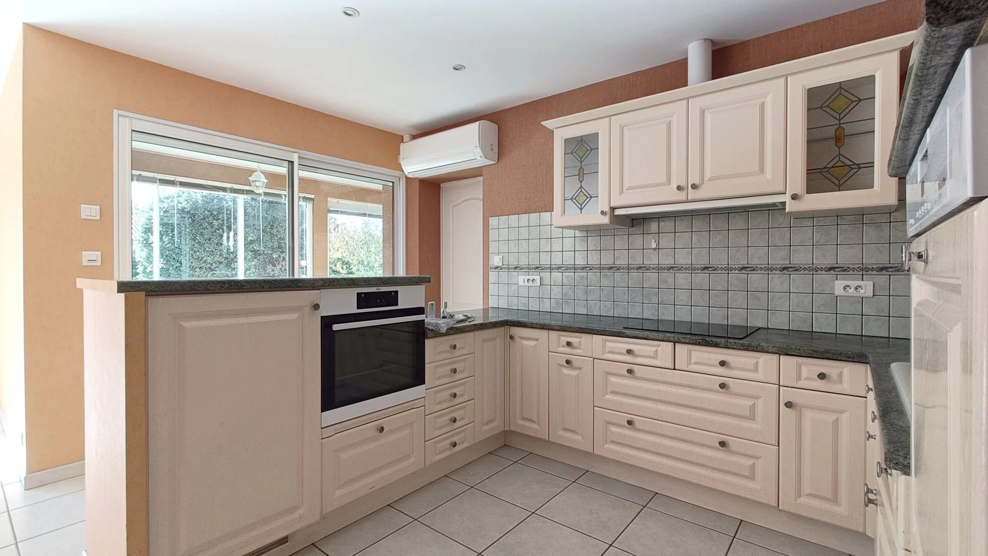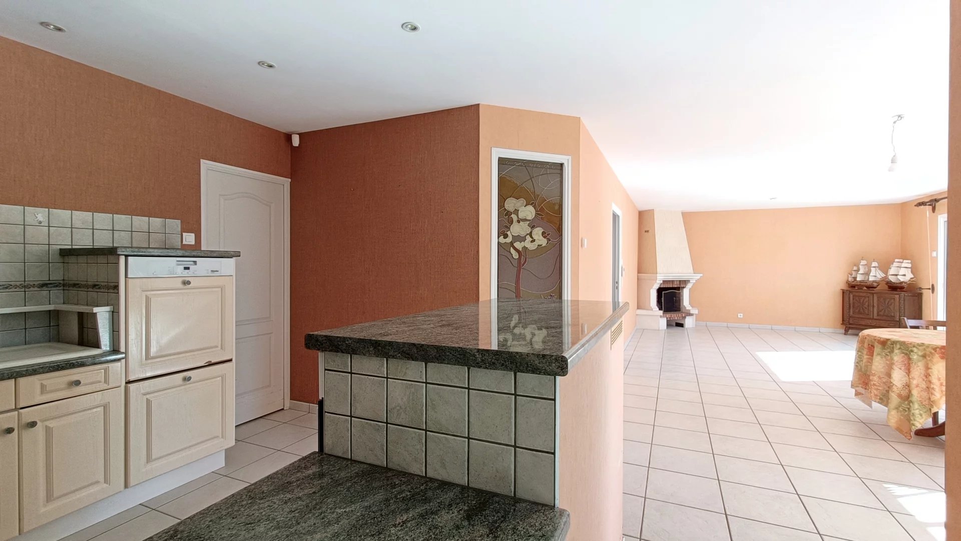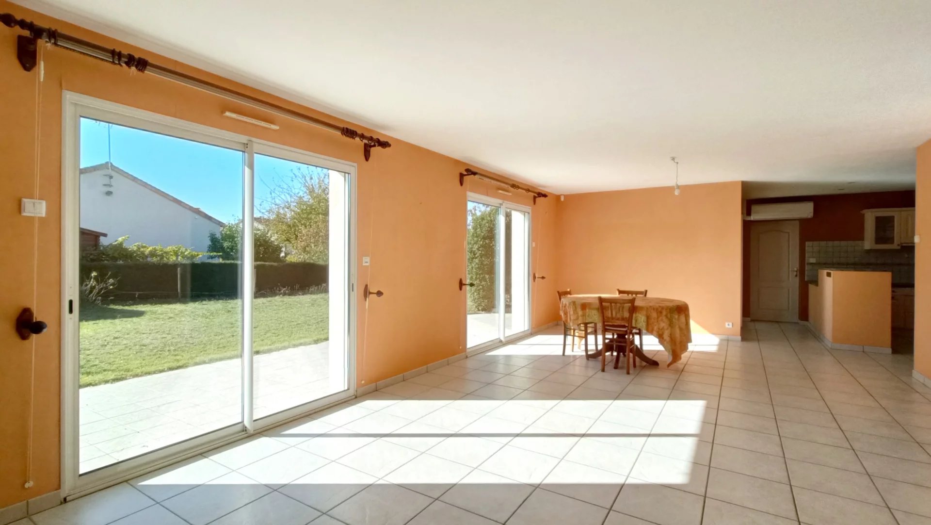 GOURDON IMMOBILIER vous propose à la vente, sur la commune de Neuville de Poitou, à 850 mètres du centre, proche commodités et commerces, une maison de plain-pied, 113 m2 habitables, comprenant : entrée, salon avec cheminée, salle à manger, cuisine aménagée et équipée avec cellier attenant, véranda, dégagement, trois chambres avec placard, WC, salle d’eau. Garage avec mezzanine de stockage, bureau. Terrain clos et paysagé de 976 m2.