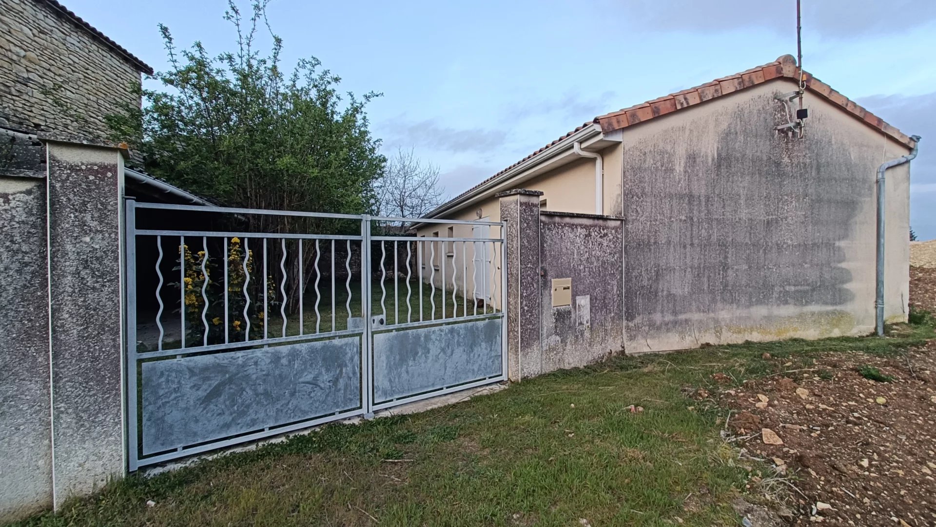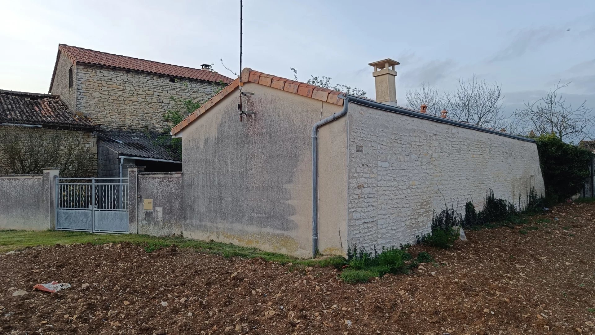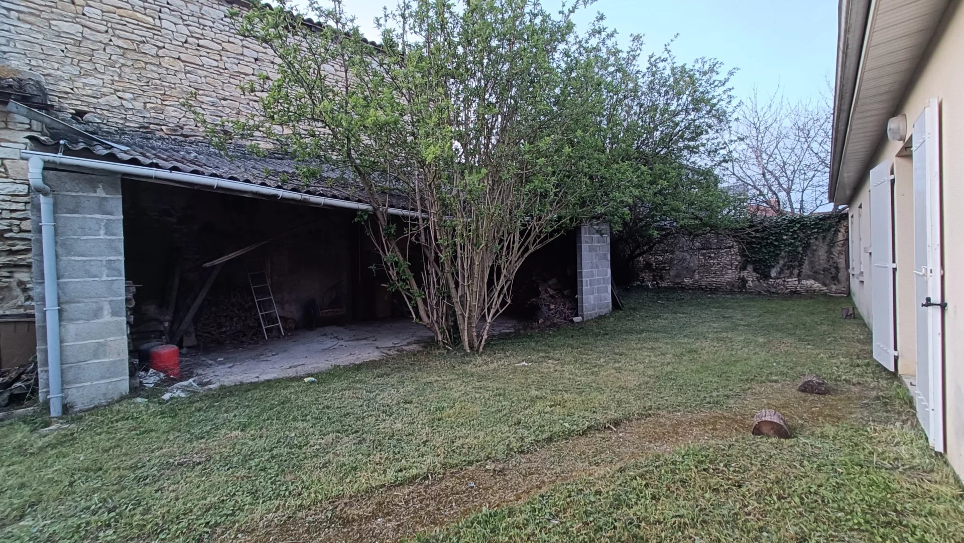 En extérieur : cour fermée, préau non attenant avec toiture fragilisée sur un terrain clos de 276 m2.