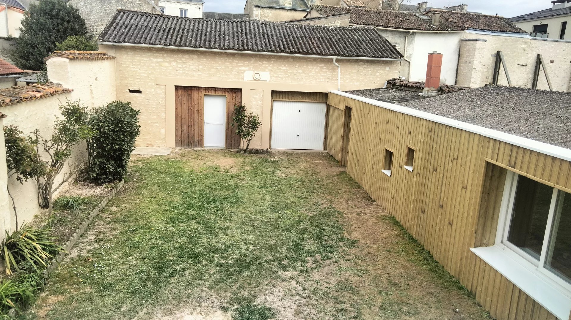 le gros atout: un garage e 50m2 au sol avec une mezzanine, idéal pour un atelier ou l'aménagement d'un studio indépendant.