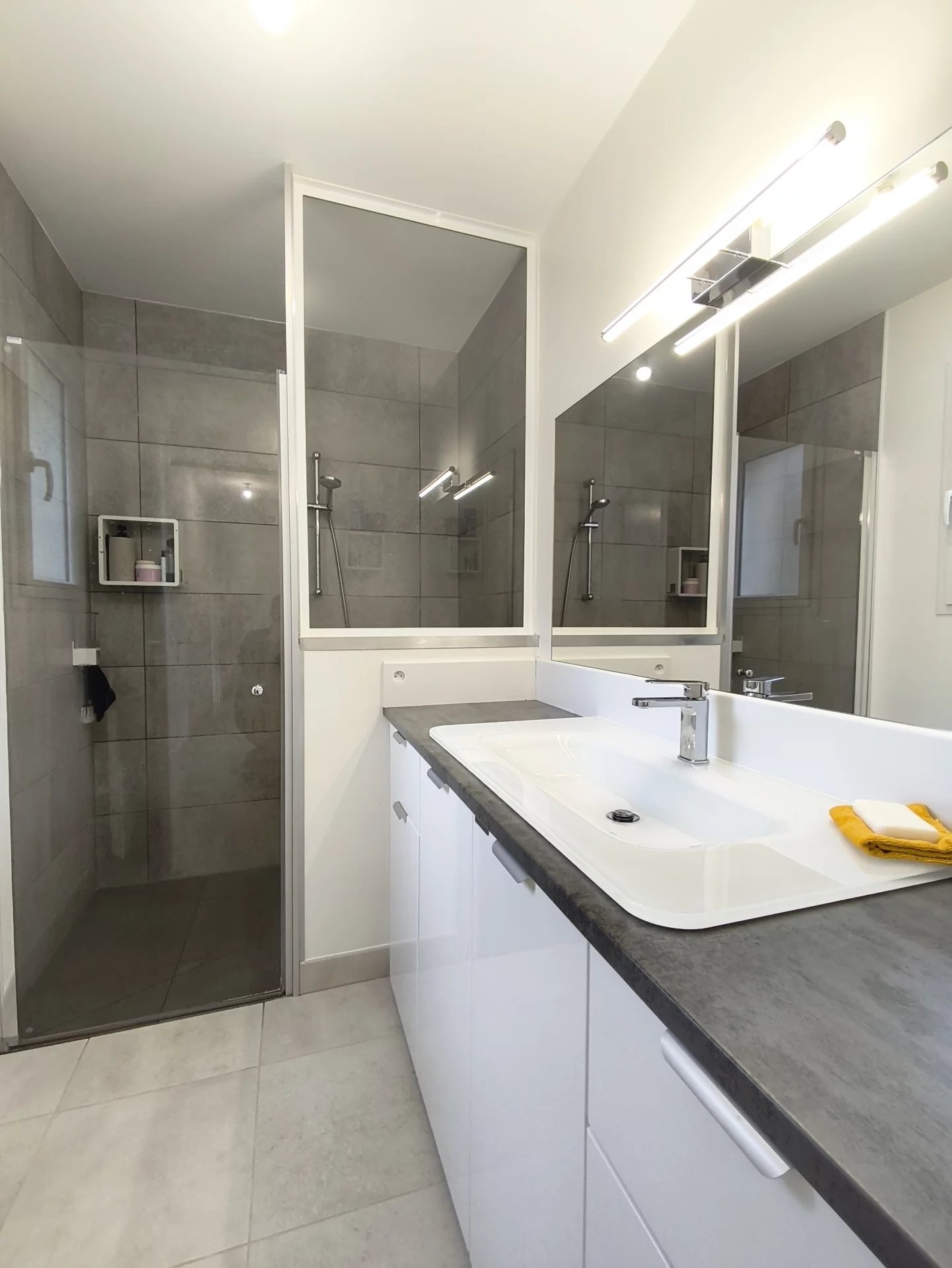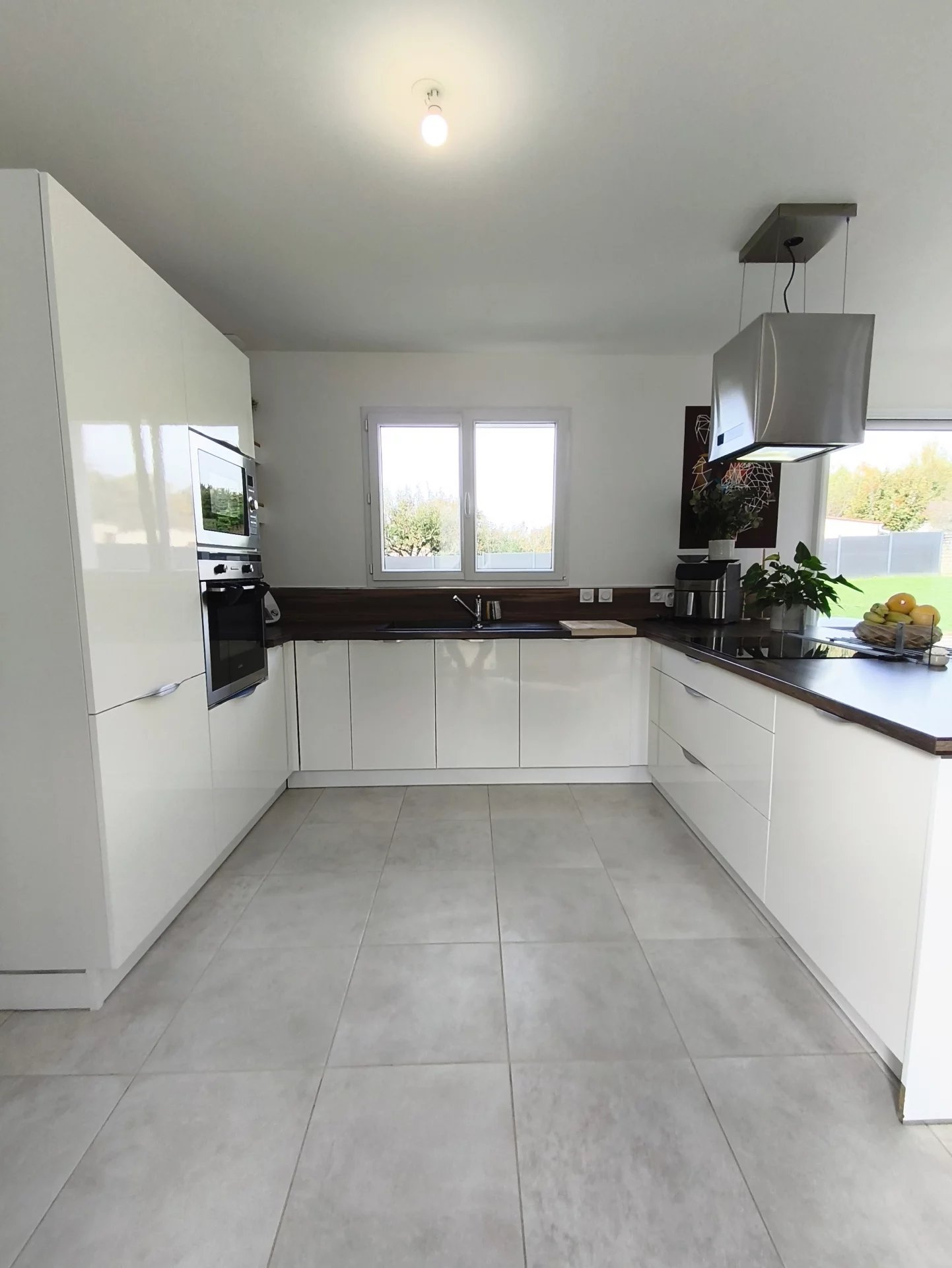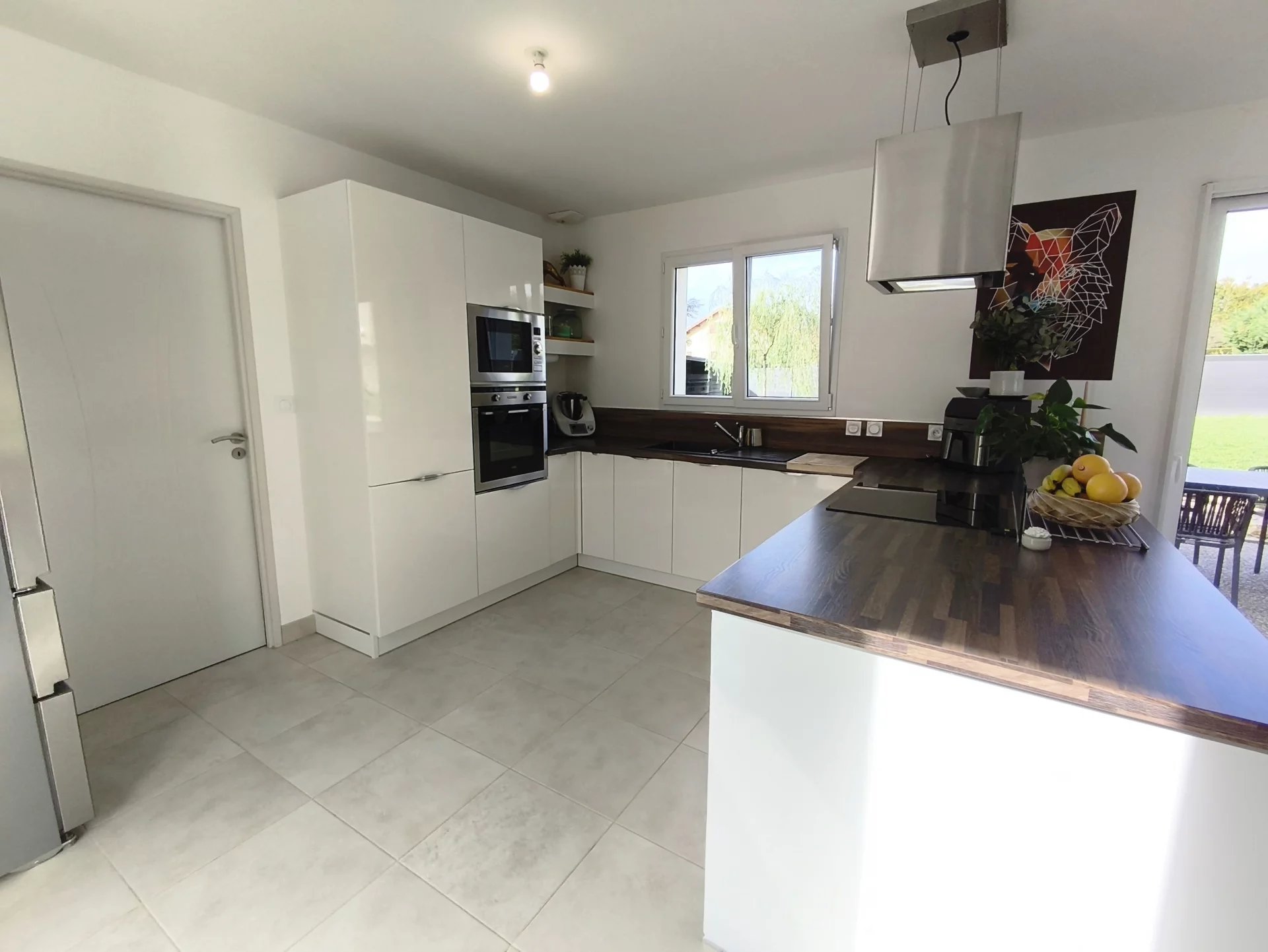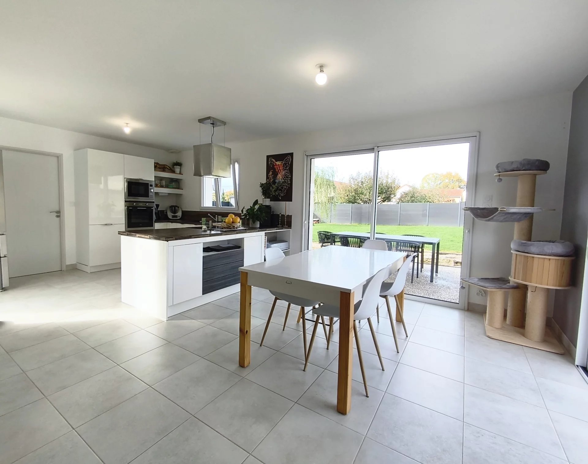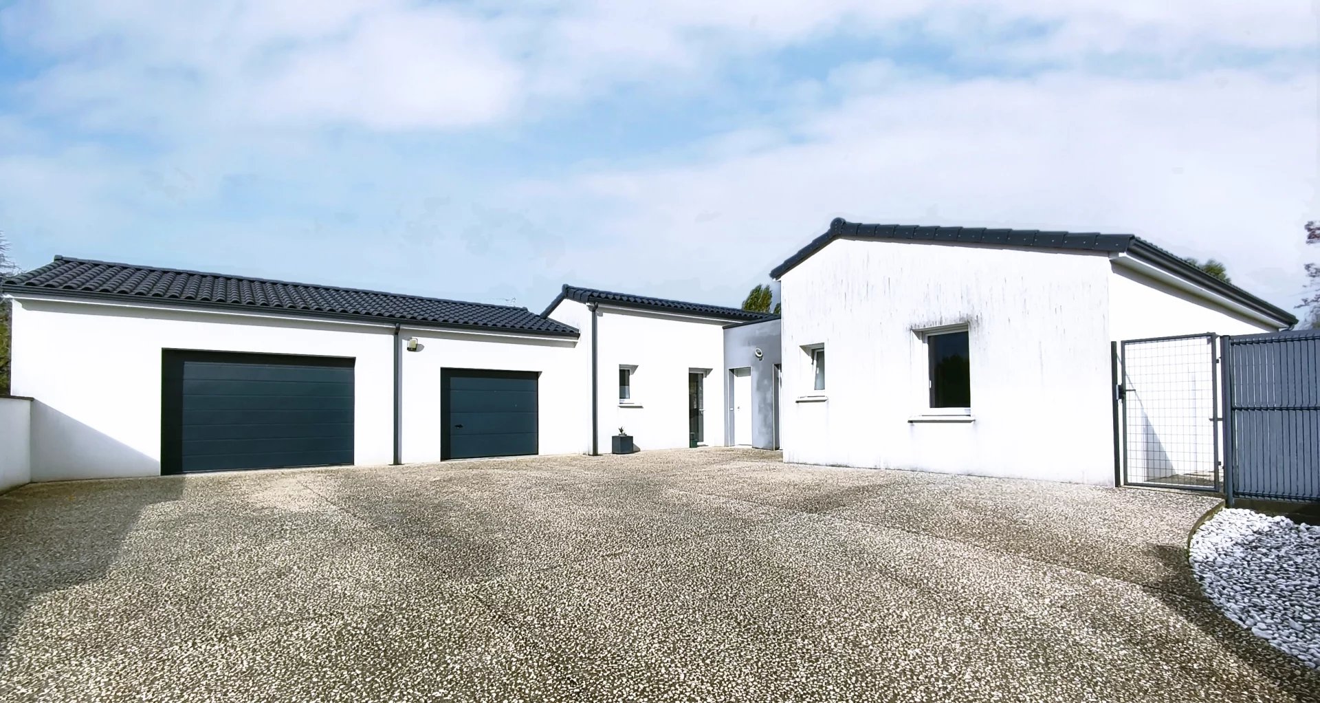 Il comprend : une pièce de vie lumineuse de 50 m2 avec une cuisine ouverte entièrement équipée, un dégagement desservant un WC indépendant, 3 chambres avec placards, une salle d'eau avec douche à l'italienne, une buanderie et deux garages (pouvant permettre des pièces supplémentaires) avec portes électrique et un grenier permettant du stockage.